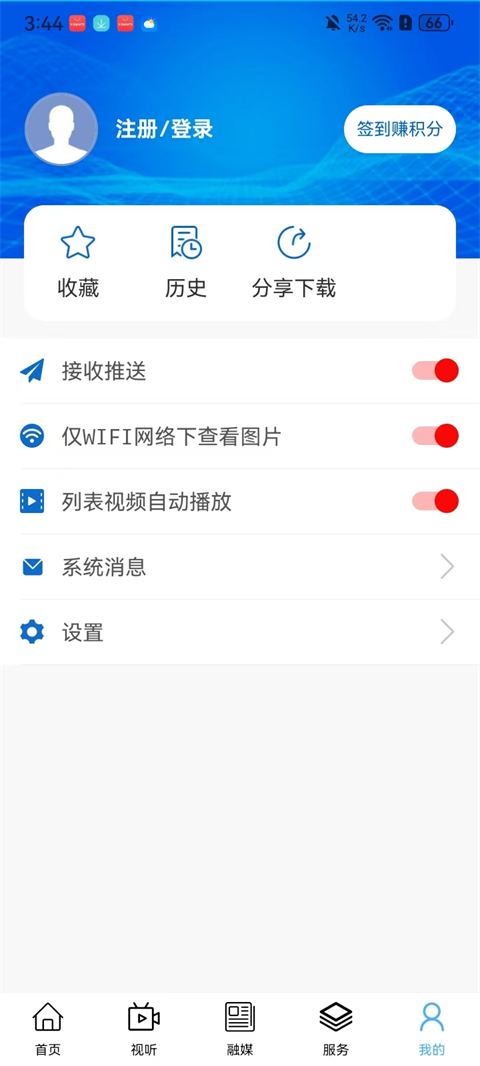 5、我的:登录后查看体验更多服务内容。