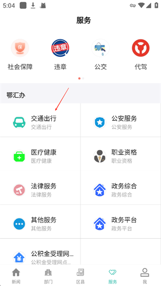 2、这里有各种板块,这边以【交通出行】为例