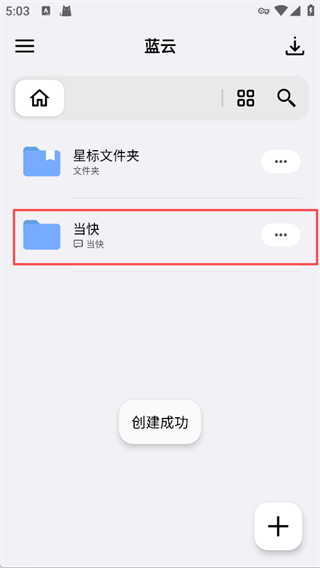 5、进入刚刚创建的文件,点击【+号】我们可以上传一些东西在里面