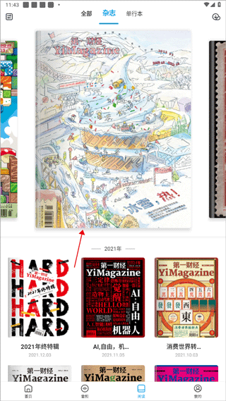 1、打开软件注册登录后,在“阅读”页面选择你想订阅的杂志。