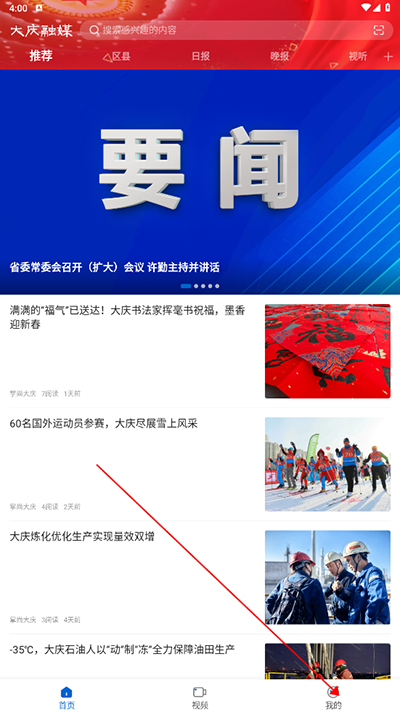 1、打开手机大庆融媒app首页,点击“我的”,如图所示
