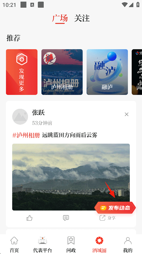 5、酒城圈:发布动态,分享生活,欣赏大美泸州;