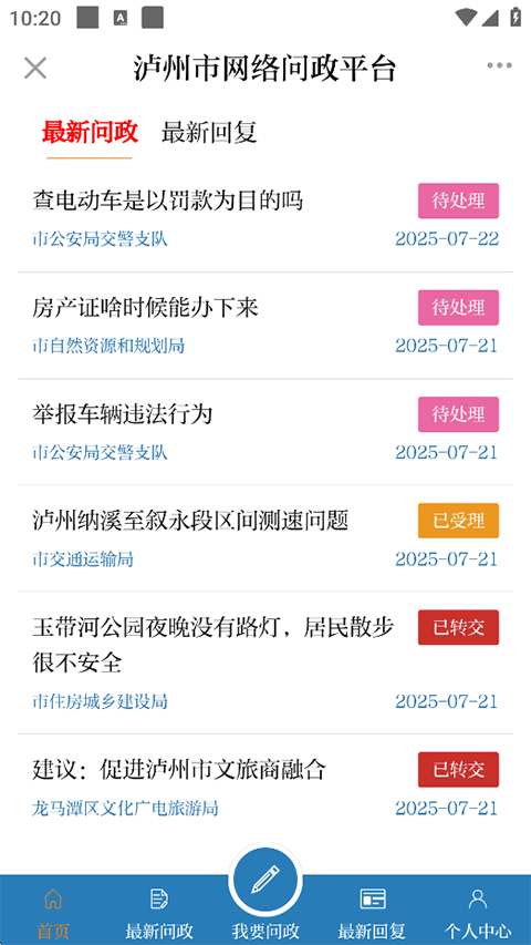4、问政:可以发表您对当地建设和政策内容的问题看法;