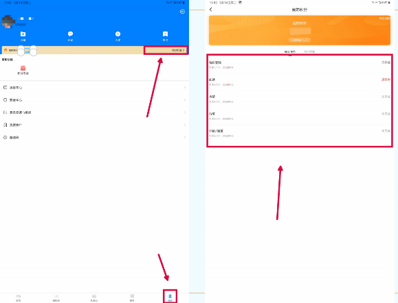 登录后点击右下角“我的”→积分明细→进入积分界面可查询积分数量以及积分任务完成情况。