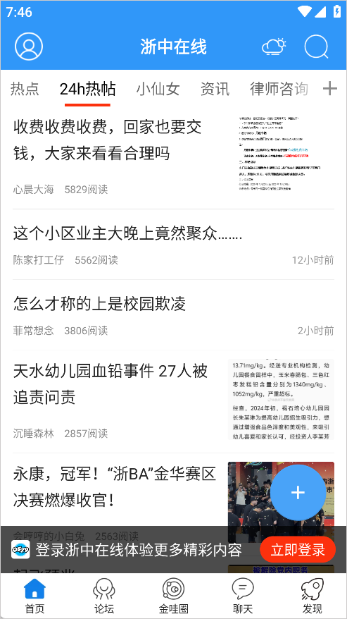 浙中在线App是金华本地综合性生活服务平台软件,集新闻资讯、同城论坛、爆料互动、天气违章查询、招聘兼职、房产交易、美食点评等功能于一体。作为“金华人的手机生活指南”,浙中在线凭借超百万本地用户积累,形成了极具粘性的互动社区“金哇圈”,每天有数十万人在线参与热点话题、求助信息、交友活动等,成为金华人社交与资讯双重阵地。在浙中在线手机客户端中,用户可以一键查看本地头条新闻、查找兼职招聘、参与本地团购优惠、加入兴趣圈子,更能便捷地完成违章查询、天气预报、找房租房等生活所需操作。