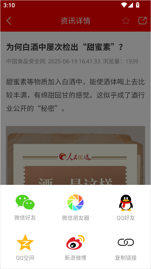 人民酒业App如何一键分享资讯到朋友圈?