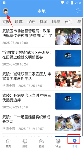 1、打开常德全媒App,点击Vlog板块