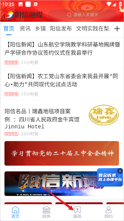 1、进入阳信融媒App后点击服务