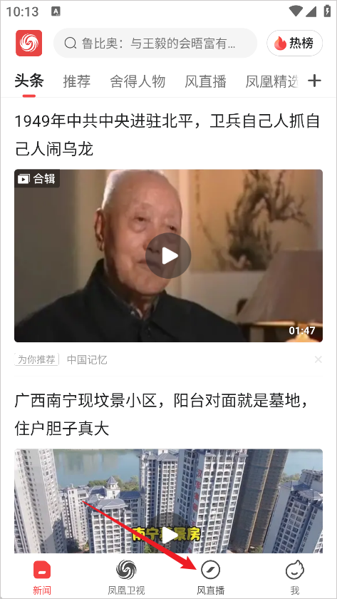 1、打开凤凰视频APP后点击下方导航栏的凤直播