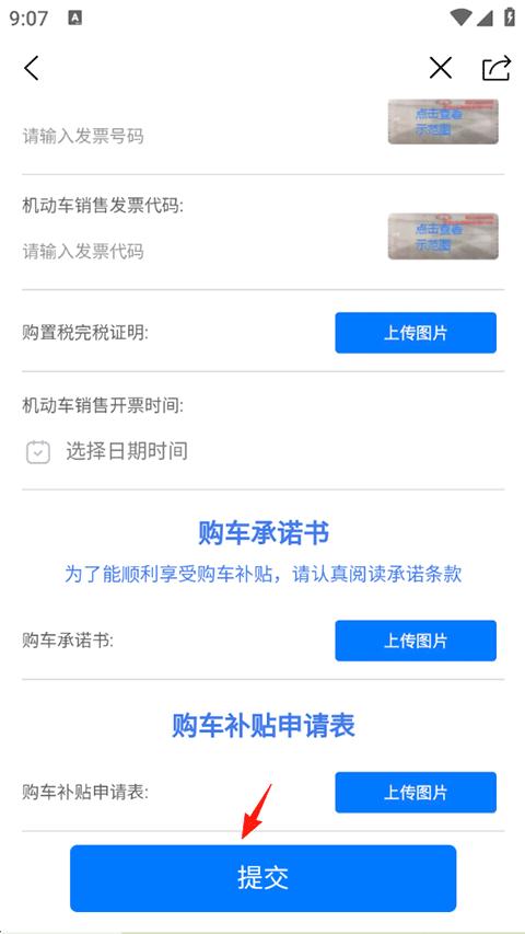 6、最后填写您的个人信息以及一系列申请凭证等材料,确认无误后点击提交等待审核,后续车补进度也可以在此页面查看。