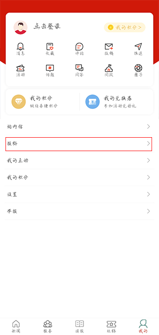 2、进入我的界面,点击报料。
