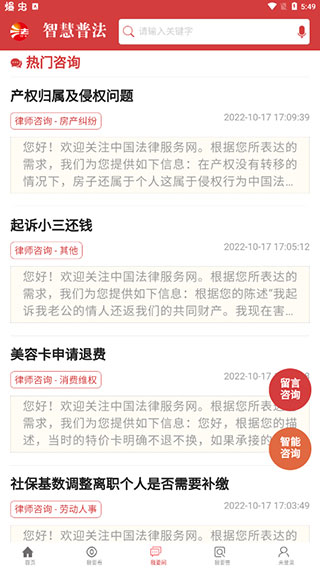 3、当然你有很多关于法律的问题也可以在这里咨询,全是免费提供服务