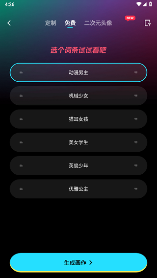 通过点击下方板块,生成图片,只不过不能按照自己想法来出图片。