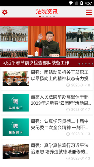 1、打开应用查看最新法院资讯。