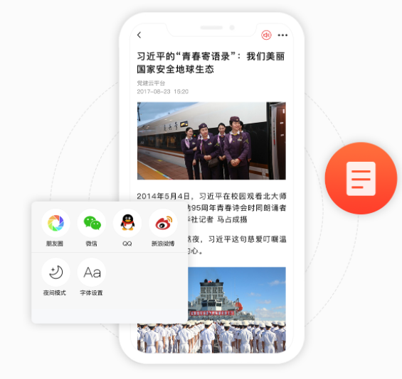 满足个性化需要:语音播报、夜间模式、字体设置、语言转文字等功能以满足党员的阅读偏好。