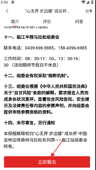 3、进入后可以看到该马拉松赛事的报名时间、比赛时间;