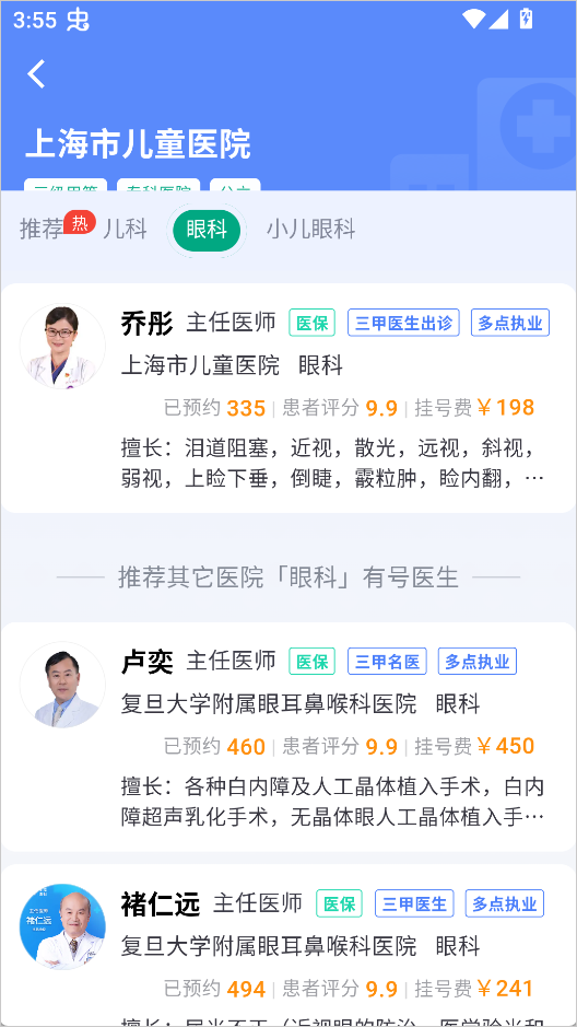 推荐多科室热门医生多点执业号源,快速预约挂号。