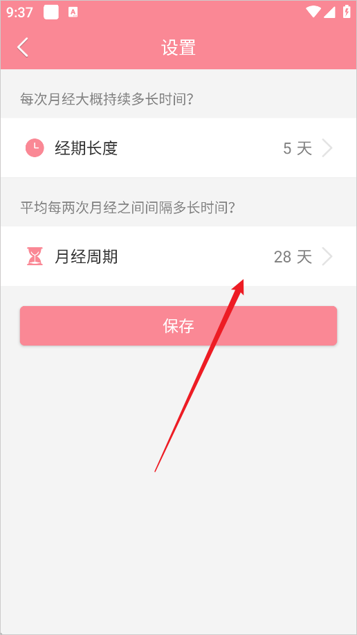 2、然后选择月经周期
