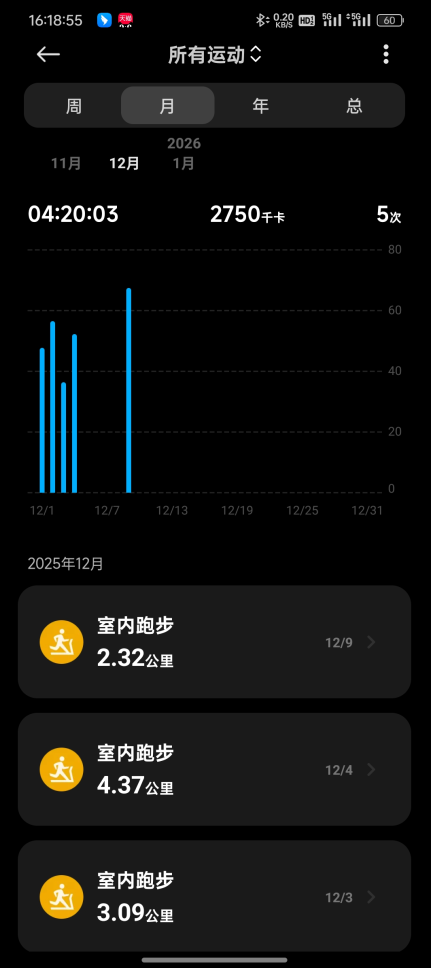 3、即可查看自己每月的跑步数据和运动趋势。