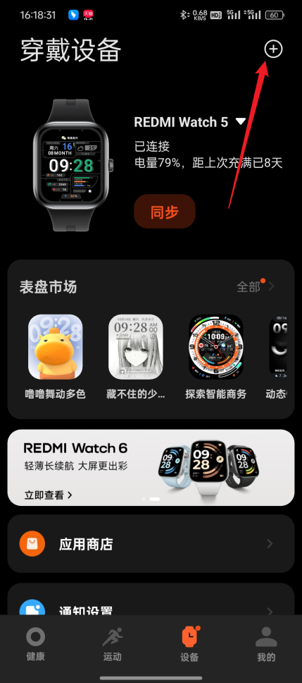 1、在设备界面找到“表盘市场”。