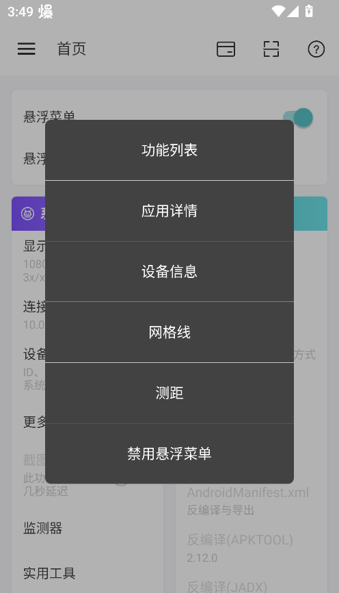 5、返回并点击已开启的悬浮窗,即可查看并直接使用刚刚新增的功能项。
