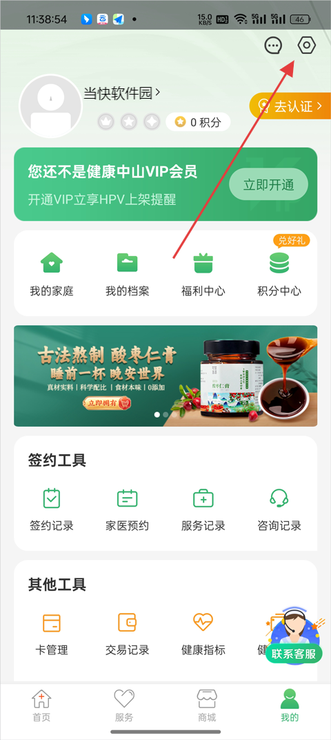 1、进入健康中山App后点击底部导航栏“我的”,进入个人中心页面