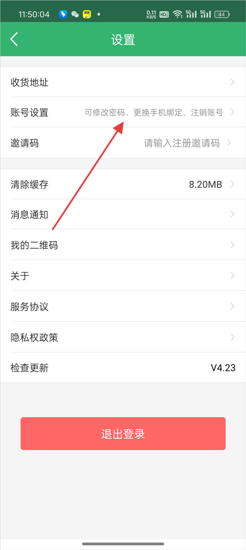 3、在账号设置功能处点击手机号码绑定右侧的更换
