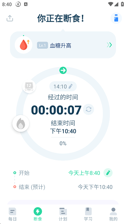 APP将随着禁食时间而提示您身体状况各阶段将产生的变化,如:血糖水平、糖原储备、代谢状态等。