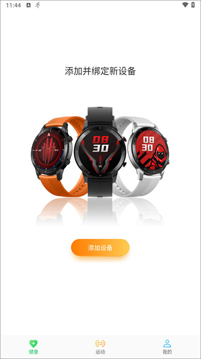 1、打开红魔运动手表app,在健康或运动界面中添加您的设备;