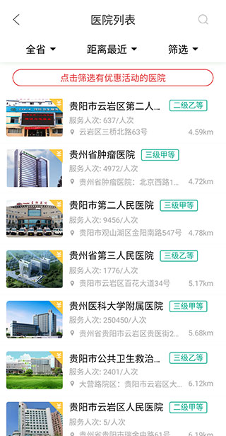 2、然后再医院列表中,选择一家满意的【医院】,上方还可以对列表进行筛选。