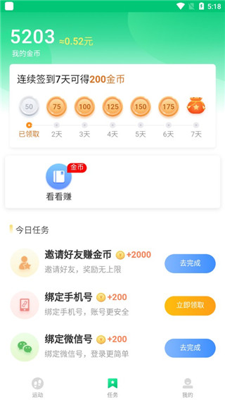 4、为大家带来了丰富的运动任务,大家可以根据需求选择任务来赚钱。