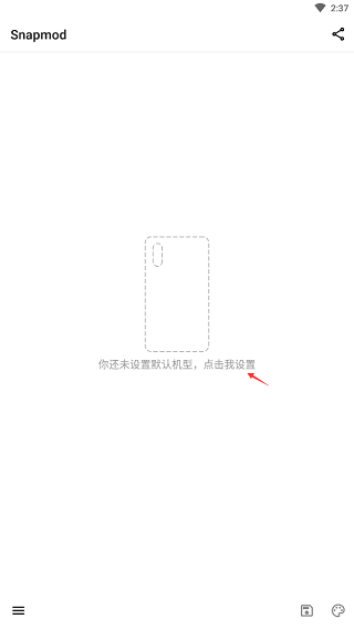 1、点击屏幕中间的“你未设置默认机型,点击我设置”文字