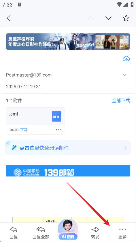 139邮箱App是一款由中国移动官方推出的多功能邮箱管理工具,融合了邮箱、云盘、智能助手与移动运营商服务于一体,支持手机、PC、短信多端收发邮件,全面满足现代办公与个人数据管理需求。其“手机号即邮箱号”的创新设计,降低了使用门槛,且具有邮件+短信双重提醒机制,确保不错过任何重要信息。作为一款智能办公应用,139邮箱支持文件云备份、微信资料存储、语音转写、资料共享群等功能,更接入DeepSeek 671B AI模型,提供智能写作、文档润色、智能问答等辅助服务,帮助用户提升办公效率,它还整合了移动话费账单服务,让通信与财务管理合二为一,构建出一个真正意义上的“智慧信息管理中枢”。