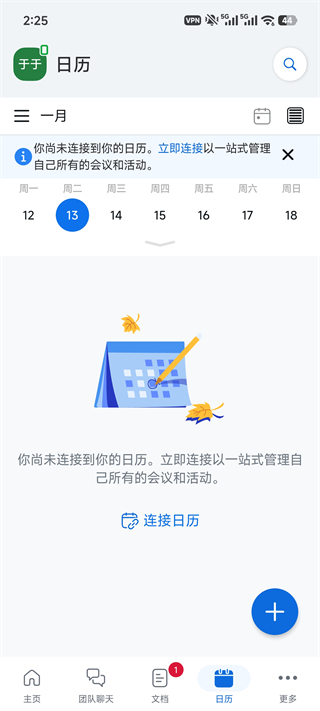 操作:点导航栏【日历】,点击【连接日历】绑定个人日历,即可同步显示会议、日程,避免时间冲突。