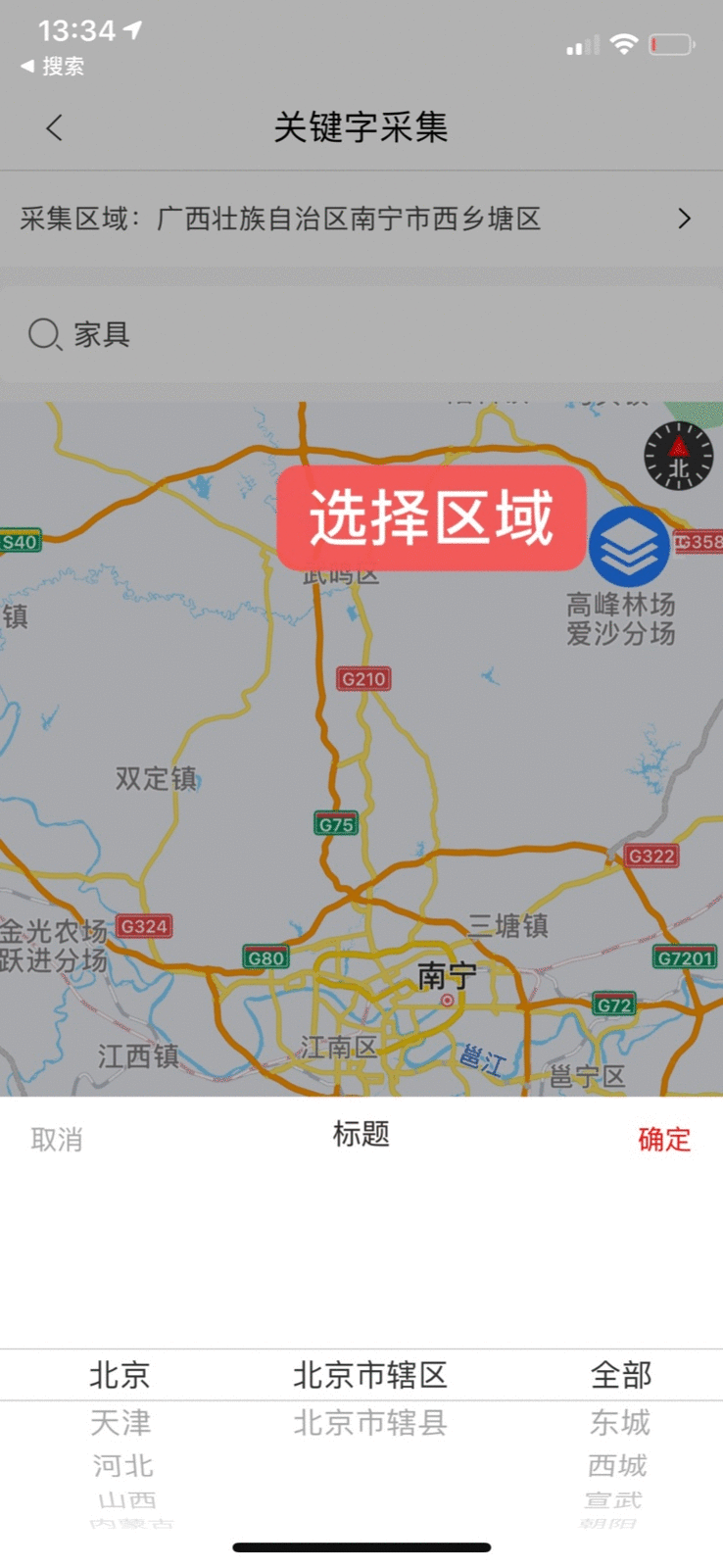 打开【附近客源】-设置范围-输入查到的关键-点击开始查询。