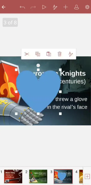 7、上面是单色填充,下面是渐变颜色,还支持图像、纹理等填充方式,并且电脑端的幻灯片的填充方式现在都可以在手机端上使用了。