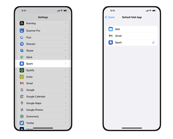 4、点击Spark将其设置为手机设备的默认邮箱应用。