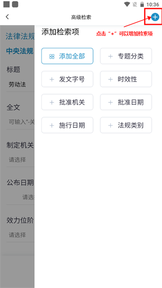 点击右上角的“+”,可以增加检索项