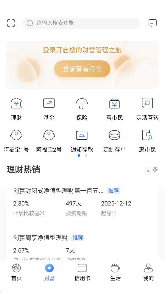 无论您是否为我行客户,都可通过客户端轻松浏览“金融服务”、“优惠咨询”、“金融计算器”、“网点查询”等功能。