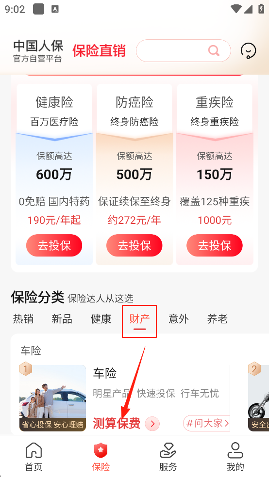 【保险商城】产品种类涵盖车险、意外险、旅游险、家财险、责任险、医疗险、重疾险等,支持线上自助投保。