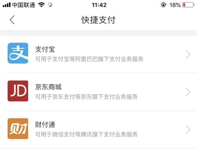 2.点击“快捷支付签约”,可开通支付宝、京东、财付通快捷支付。