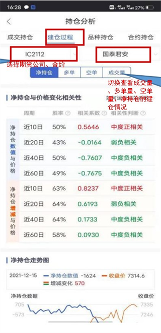 3、在建仓过程可查看某一家期货公司客户某一品种的建仓过程;