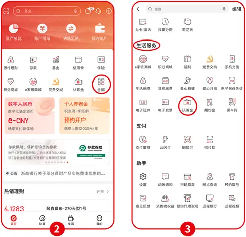 3、选择首页认筹金或“全部”,然后选择“生活服务”板块,认筹金在页面下方,点击认筹金业务。