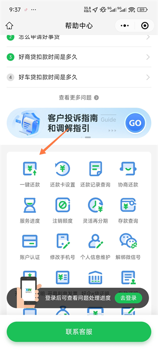 3、除此之外,你还可以点击客服进入小程序选择一键还款