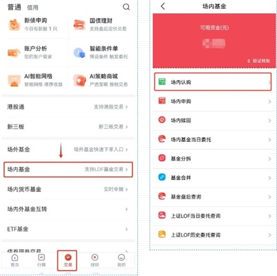 Step1:登录粤管家APP,点击【交易]-【场内基金】-【场内认购】
