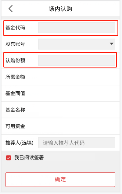 Step2:输入基金代码和认购份额
