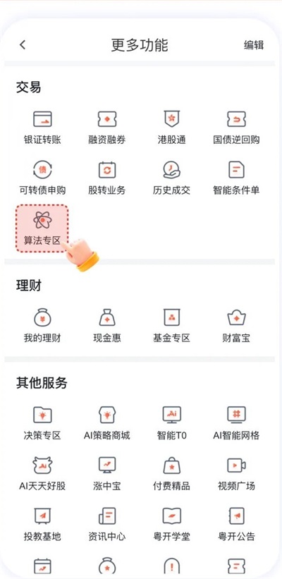 2.找到交易模块-【算法专区】