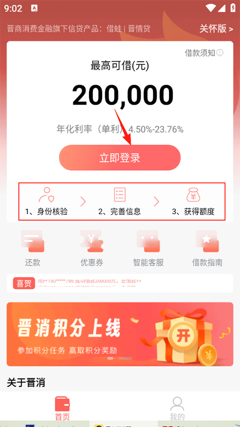 1、进入晋商消费金融APP首页: