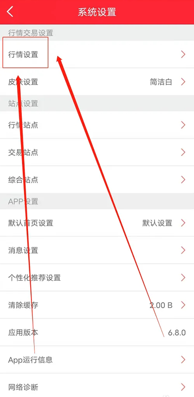 2、选择点击行情设置。