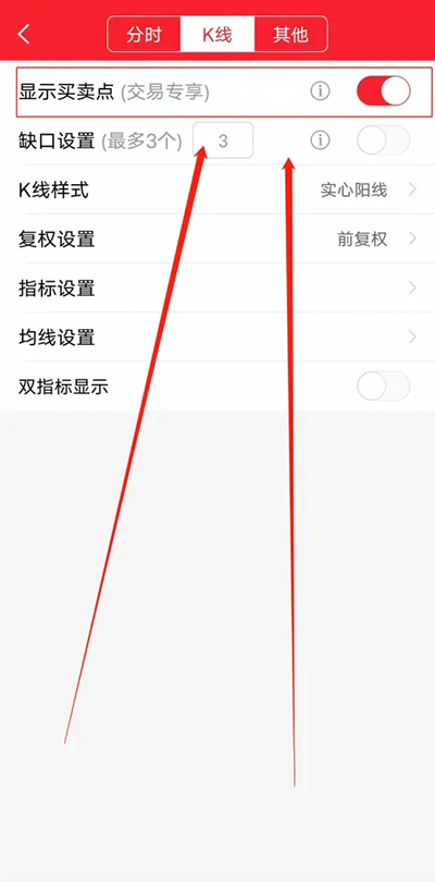 3、最后点击打开显示买卖点开关按钮即可完成。